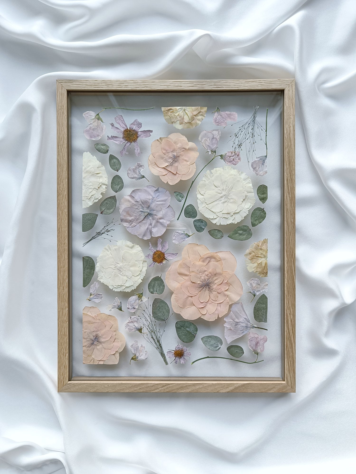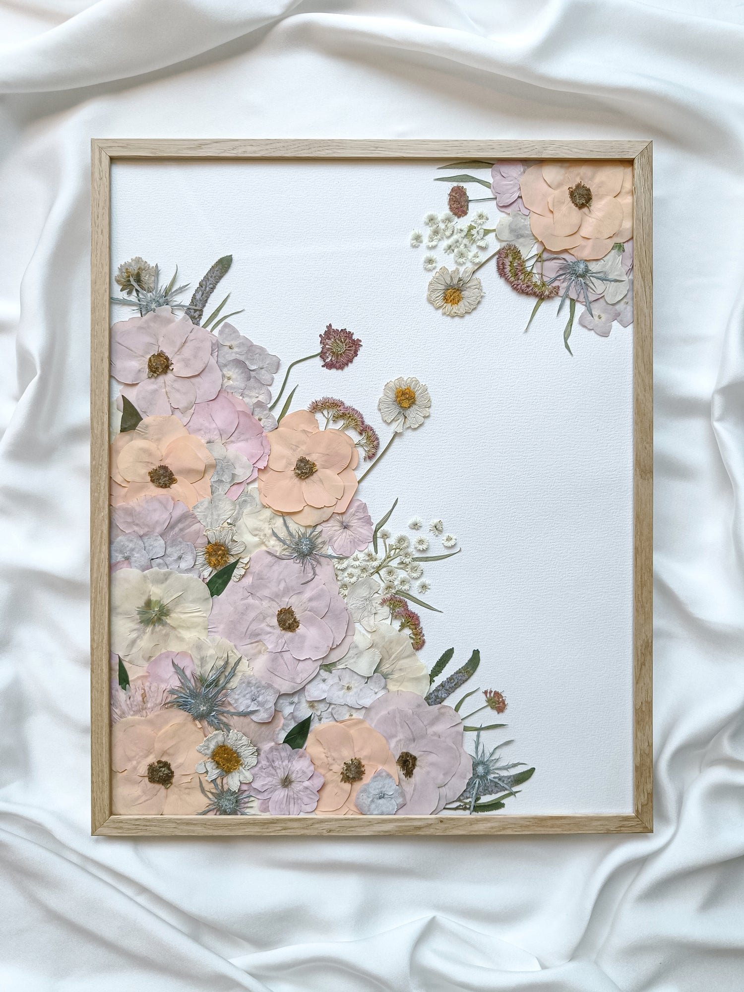 Iso kehys, joka sopii suuremmille kimpulle. Suositus runsaille morsiuskimpuille.